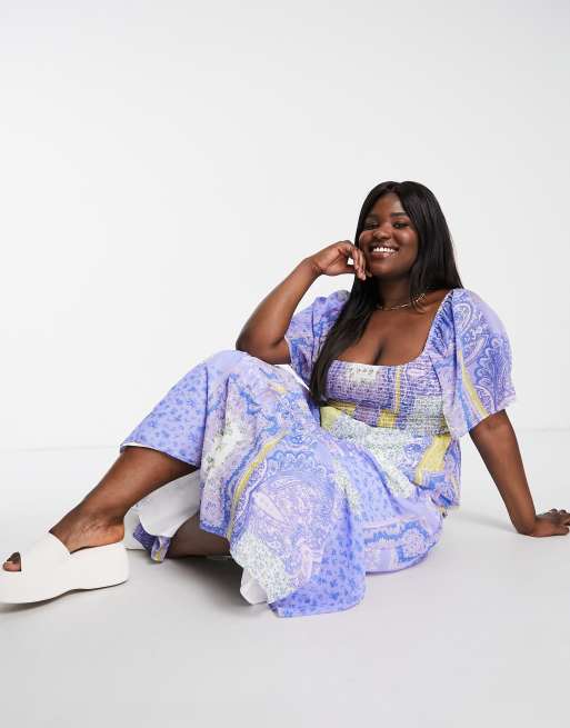 ASOS DESIGN Curve scoop neck maxi dress with raw edge in mixed scarf print Very well made.