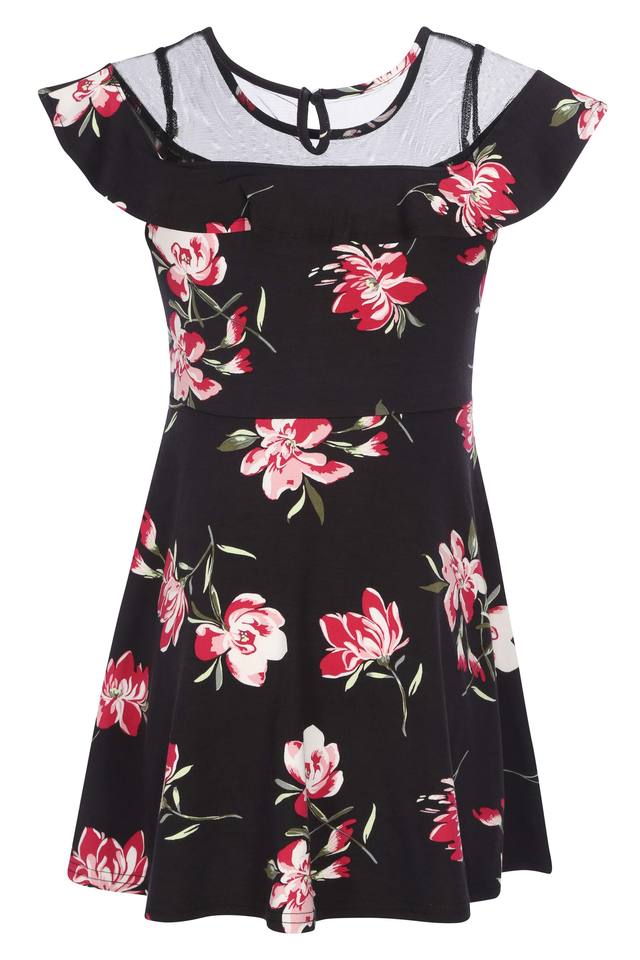 Girls Round Neck Floral Print A Line Dress Very well made.
