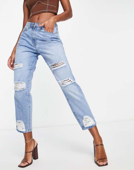 Parisian boyfriend jeans with knee rips in light blue Very well made.