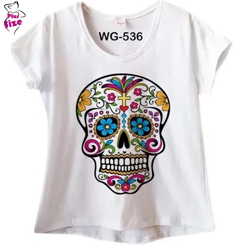 Camiseta feminina Branca caveira mexicana florida em Promo o na Very well made.